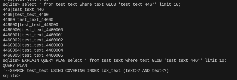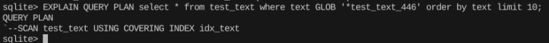 LIKE 대신에 GLOB 연산자를 이용해 패턴 검색을 적용한다면 인덱스를 태울 수 있다.