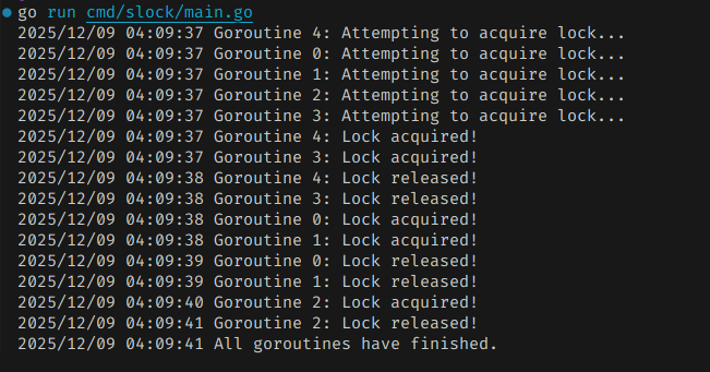 log.Printf("Goroutine %d: Attempting to acquire lock...", i)