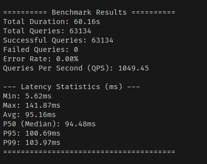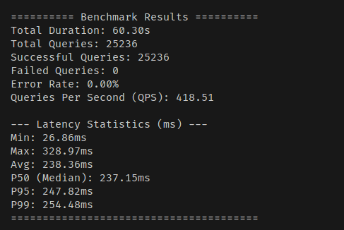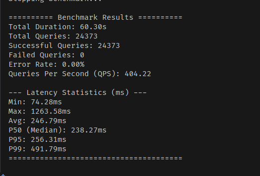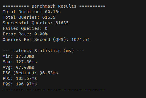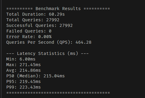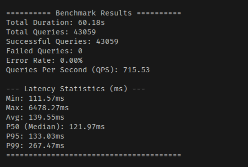 그리고 간단한 Query 벤치마크, 동시에 최대 100개의 쿼리를 날릴 수 있게 했다.