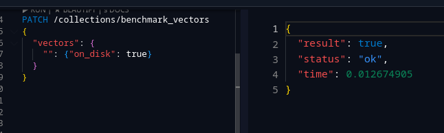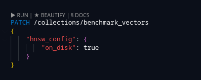 하지만 메모리가 넉넉하지 않고 성능을 약간 포기해도 된다면, 인덱스를 디스크에 올려서 쓰게 하는 것도 가능하다. 이건 on_disk 옵션을 통해 설정할 수 있다.
