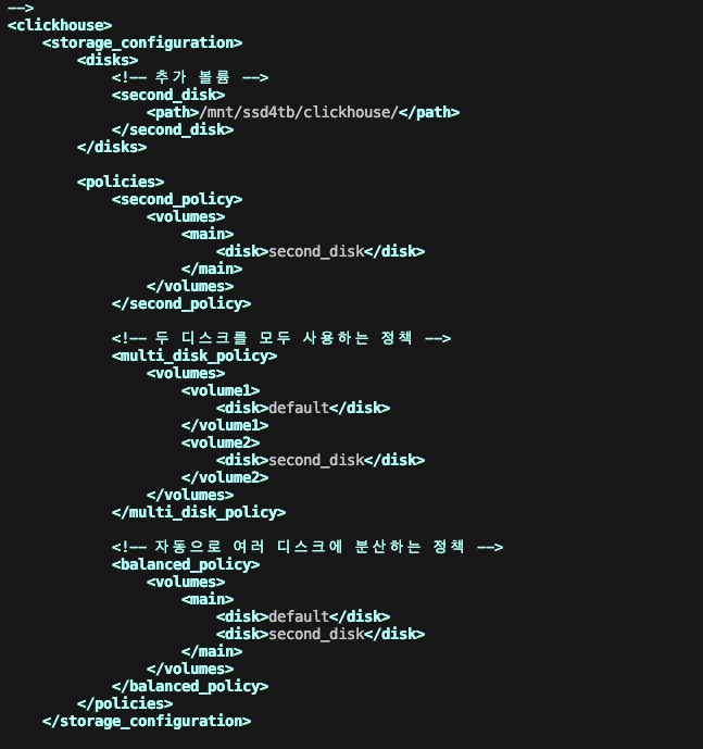 clickhouse는 멀티 디스크나 외부 파일시스템 연동을 위한 기능을 제법 잘 지원한다.