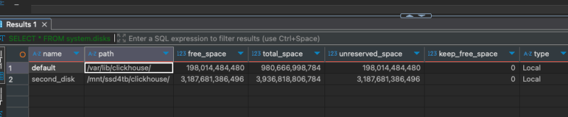 clickhouse는 빅데이터를 다루는 시스템이고, 대부분의 사용사례에서는 디스크를 매우 많이 사용한다.