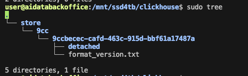 clickhouse란 디렉터리를 만들고, 저기에 데이터가 저장되도록 했다.