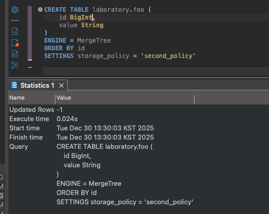 기본 데이터 경로가 기본 disk로 설정되어있고, 별다른 옵션을 주지 않는다면 이 기본 disk에 저장하도록 테이블이 만들어지는 것이다.