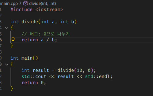 // ๋ฒ๊ทธ: 0์ผ๋ก ๋๋๊ธฐ