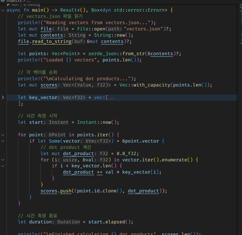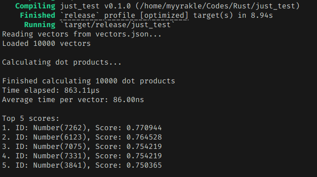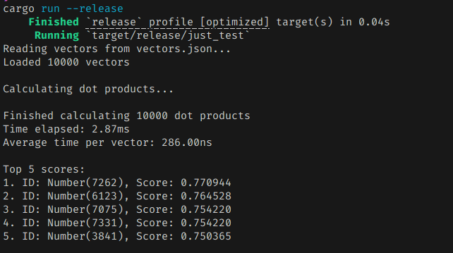 그냥 평범하게 구현했을 때는 하나의 벡터 스코어를 추출하는데 거의 300나노초 가량이 걸렸다.