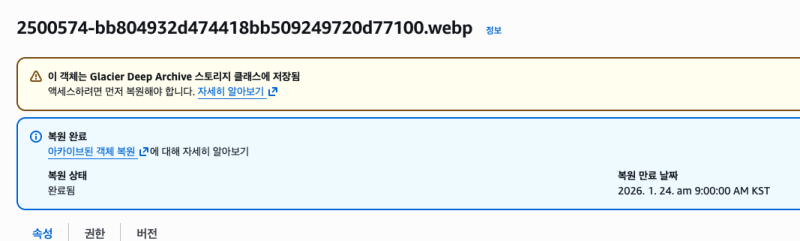Deep Archive๋ก ์ฎ๊ธฐ๊ฑฐ๋ ์ฌ๋ฆฌ๋ ๊ฒ์ ๋งค์ฐ ์ฝ๋ค. ๊ทธ๋ฌ๋ฉด ์ฝ์์์๋ ๋ค์๊ณผ ๊ฐ์ด ํ์๋๋๋ฐ