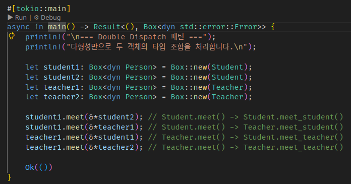 Double Dispatch๋ ๊ฐ์ฒด 2๊ฐ์ง์ ํ์