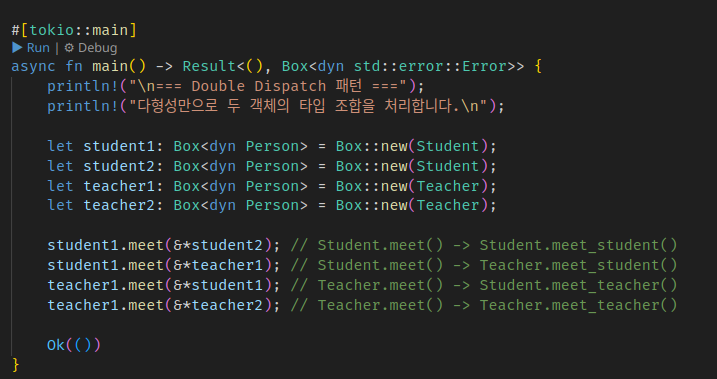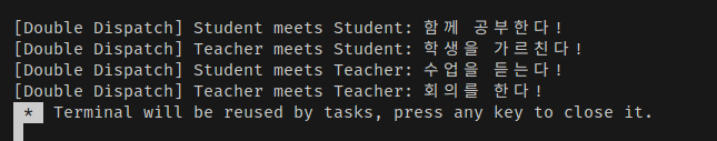 Double Dispatch๋ ๊ฐ์ฒด 2๊ฐ์ง์ ํ์