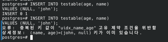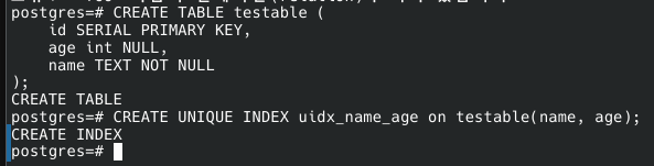 CREATE UNIQUE INDEX uidx_name_age on testable(name, age);