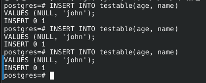 INSERT INTO testable(age, name)