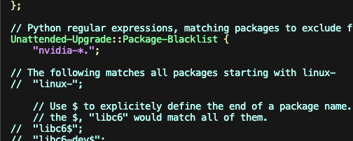 sudo vi /etc/apt/apt.conf.d/50unattended-upgrades