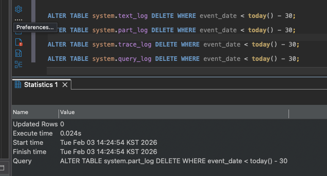 Clickhouse는 기본적으로 쿼리나 내부 로그를 아끼지 않고 푸짐하게 저장하는 편이다.