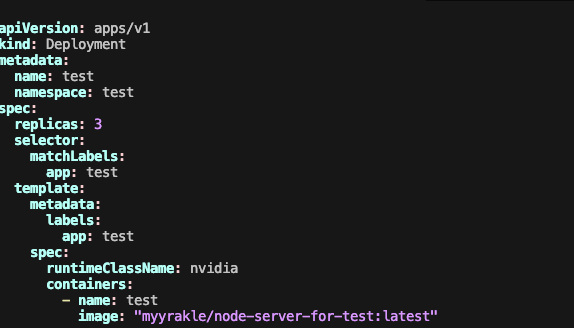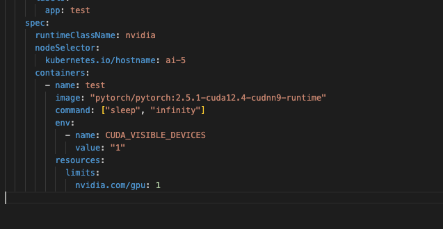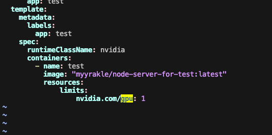 pod spec에 runtimeClassName으로 nvidia 클래스를 넣으면, 해당 리소스가 있는 노드에만 Pod를 프로비저닝한다.