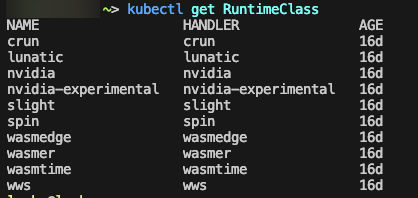 RuntimeClass의 기본 값 목록은 쿠버 클러스터 구성에 따라 다를 수 있다.