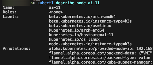 이것저것 다 잘 세팅했고 문제가 없다면, 노드 정보에 nvidia 관련된 속성값들이 추가될 것이다.