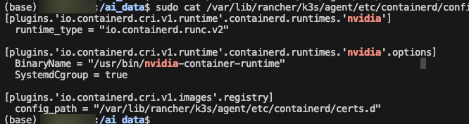 GPU가 깔려있는 노드에서 containerd 설정파일을 수정하고 재시작한다.