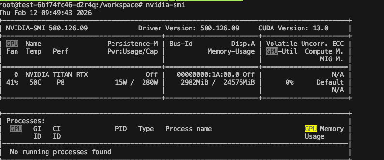 그럼 실제로 할당한 1번 GPU가 잡힌다.