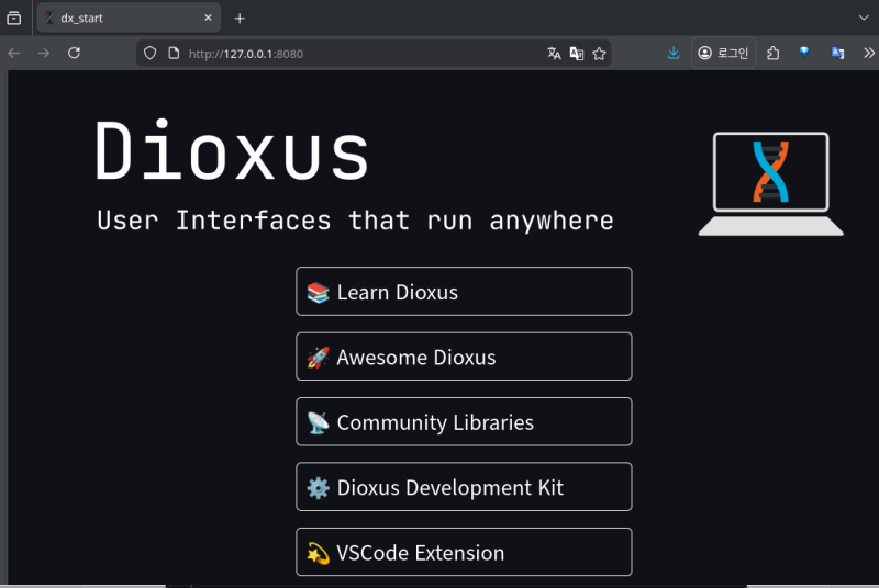 dioxus는 Rust 언어 기반의 클라이언트 개발 프레임워크다.