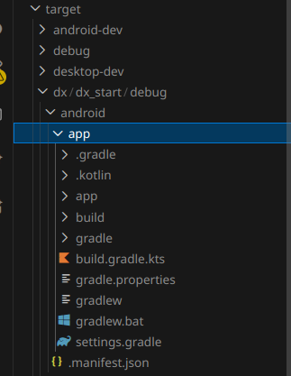 모바일 빌드의 결과물 또한 target dx 폴더에 생성된다.