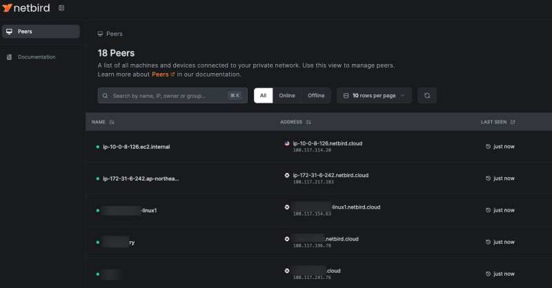 ๋ด netbird IP๋ ํ ๋น๋์ด์๊ณ , ๋ค๋ฅธ peer๋ค๋ ๋ ์๋ค๋ ๊ฒ์ด ๋ฌ๋ค.