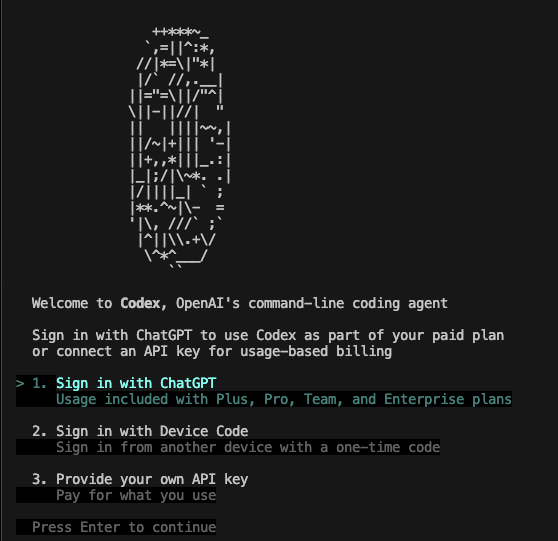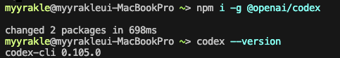 ์ค์นํ๋ฉด codex๋ผ๋ ์ด๋ฆ์ผ๋ก ์คํ์ด ๊ฐ๋ฅํด์ผ ํ๋ค.