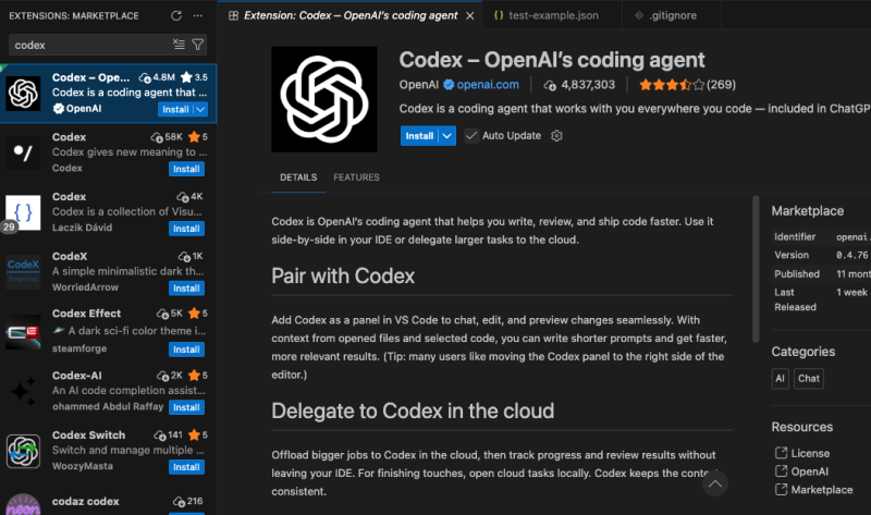 codex๋ openai์์ ๋ง๋ claude code์ ์นดํผ์บฃ์ด๋ค. GPT ๋ชจ๋ธ์ ์ฑํ CLI ๊ธฐ๋ฐ์ผ๋ก ๊ฐ๋ฐ ๋ฑ ๋ค์ํ ์์ ๋ค์ ์ฒ๋ฆฌํ ์ ์๊ฒ ํด์ค๋ค.