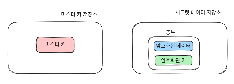 일단 보안 수준을 격리할 수 있다. 만약 시크릿 데이터 저장소가 공격을 당해 데이터가 유촐되더라도, 마스터 키가 없으면 아무것도 읽을 수 없는 것이다.