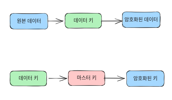 마스터 키라는 별도의 키를 만들어서 방금 만든 데이터 키를 또 암호화한다.