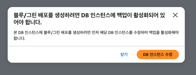 내 경우에는 기존 blue DB에 논리적 복제가 남아있어서 생긴 문제였다. 논리적 복제를 전부 삭제한 뒤 재시도하니 성공했다.