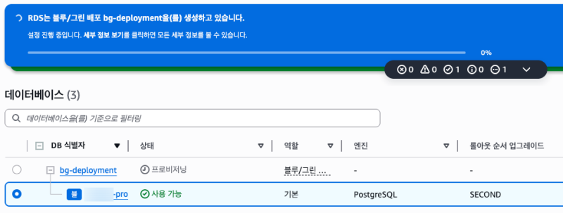그리고 blue DB에는 이 복제를 위한 replication이 생성된다. (PostgreSQL)