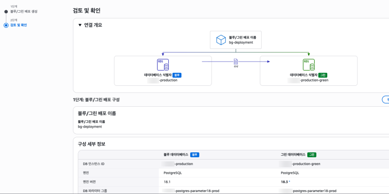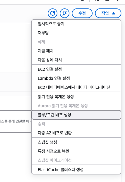 새로운 DB(Green)을 어떤 옵션으로 생성할지 선택할 수 있다.