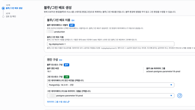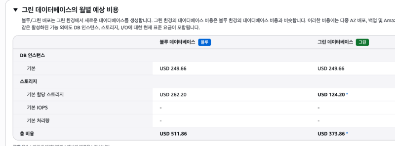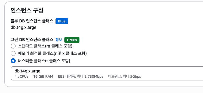 새로운 DB(Green)을 어떤 옵션으로 생성할지 선택할 수 있다.