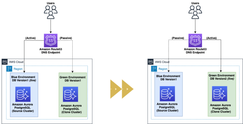 새로운 버전의 DB(Green)을 띄워놓고 물리적 복제를 기반으로 데이터를 실시간으로 동기화하는 것이다.