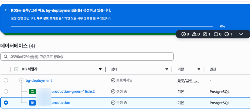 그리고 blue DB에는 이 복제를 위한 replication이 생성된다. (PostgreSQL)