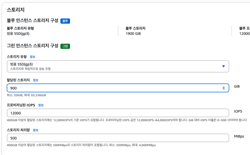 스토리지 옵션도 변경 가능하다.