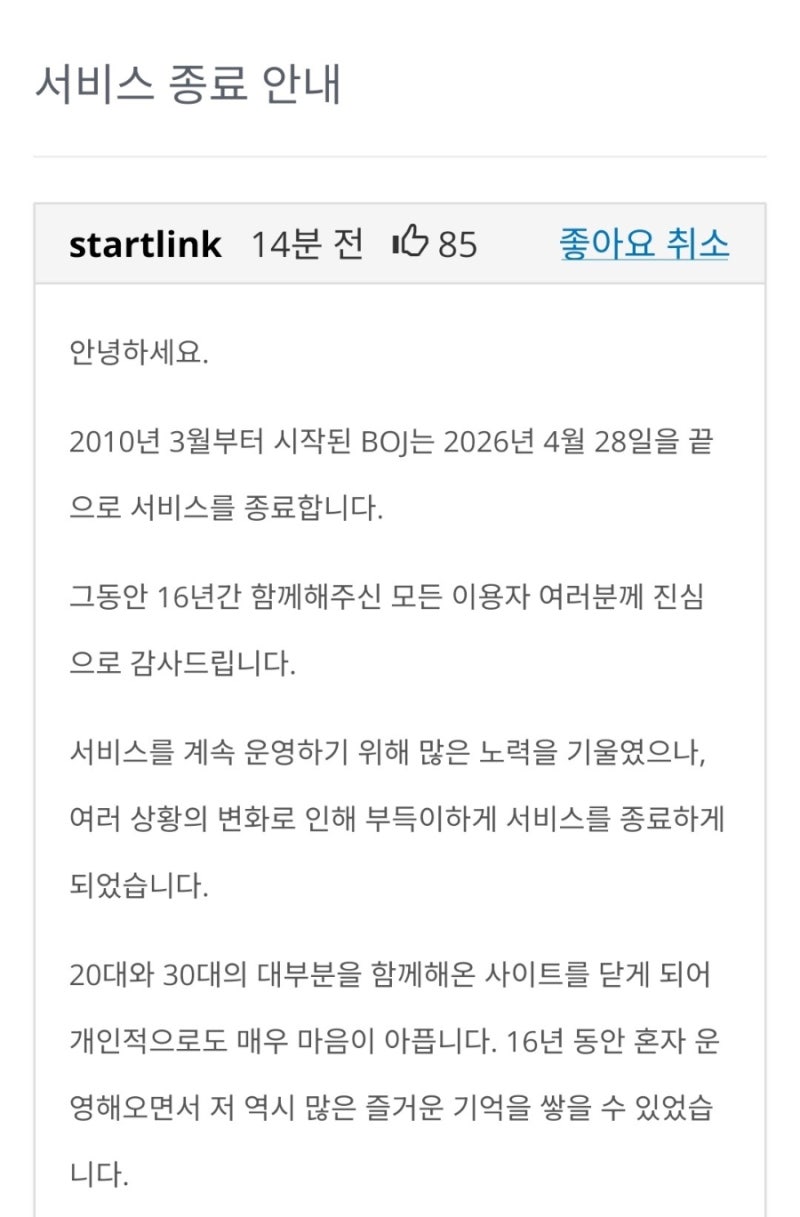 서비스 하나가 또 역사 속으로 저물어간다.