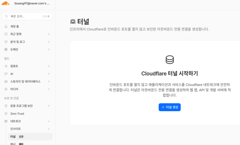 ๊ทธ๋ฆฌ๊ณ ํฐ๋์ ํตํด ์์ ๊ณต๊ฐ๋ฅผ ํ๋ ค๋ฉด Cloudflare์์ ๋๋ฉ์ธ์ ๊ตฌ์ ํ ๊ฒ์ด ์์ด์ผ ํ๋ค.