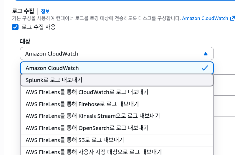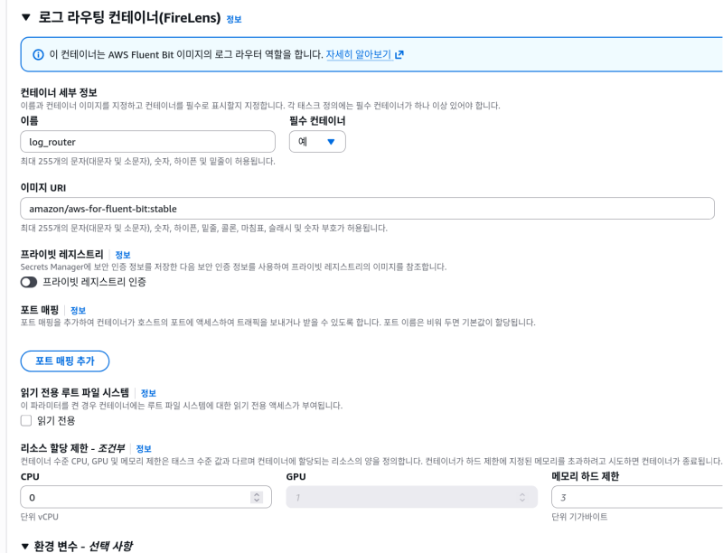 이걸 FireLens - 사용자 지정으로 변경한다.